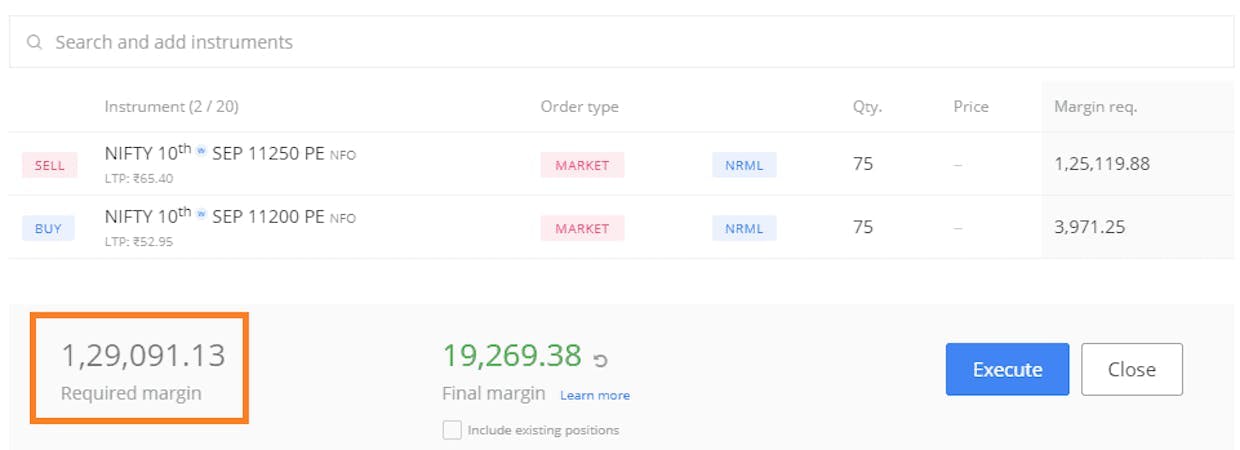 However, if the BUY leg is executed first, the margin benefit is considered as given below and amount required in account comes down.