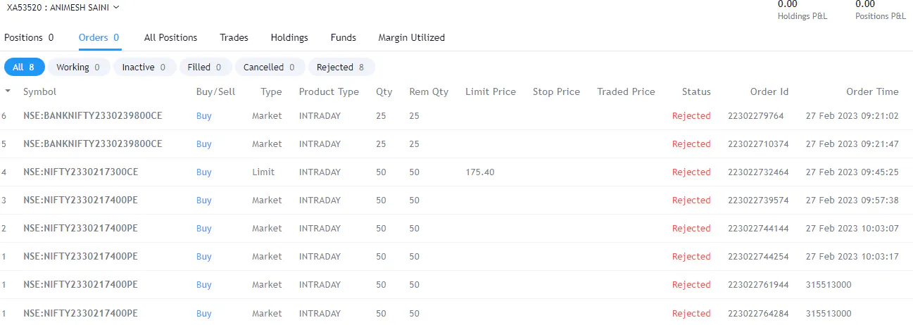 orders are rejected why?